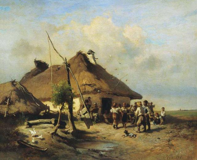 І.Соколов. Біля шинку. 1864. Полотно, олія