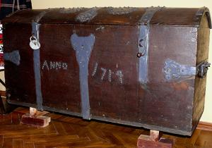 Скриня була основним компонентом традиційного весільного посагу молодої, тому мальована і кована скриня вказували на заможність її сім’ї.