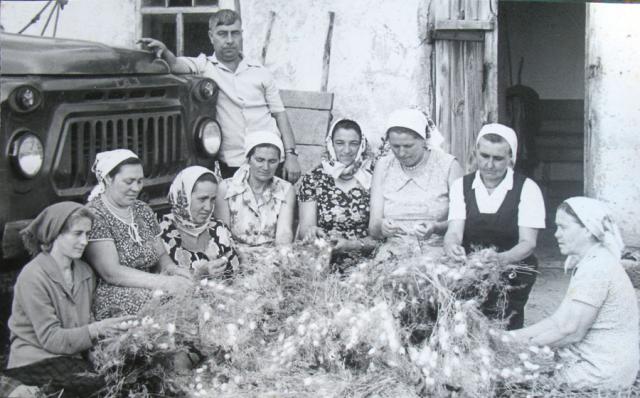 Збір шовкопряду. с.Вереміївка Чорнобаївського р-ну Черкаської обл. 1970-ті рр.